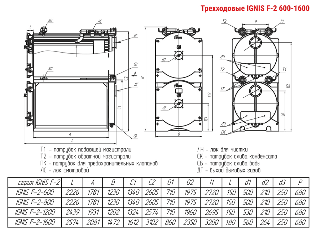 Технические характеристики модульного водогрейного трёхходового котла ARCUS IGNIS F-2-600