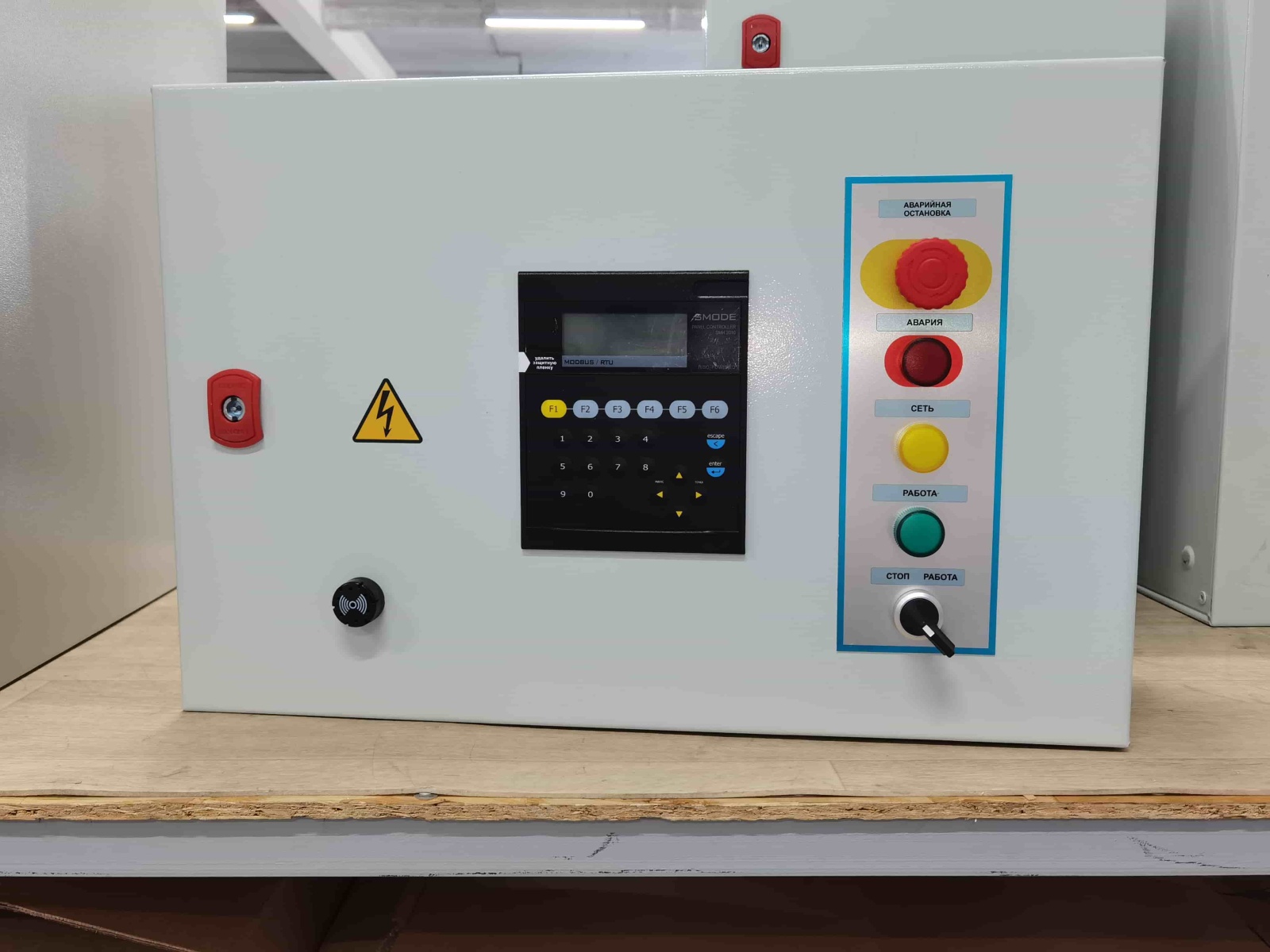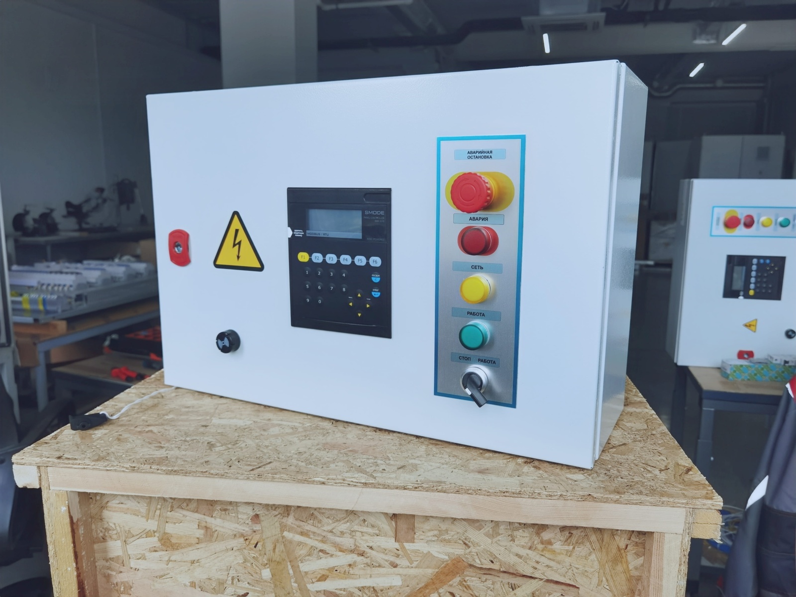 Система автоматики работает на контроллере Segnetics SMH4. Контроллер принимает сигналы с датчиков и выдает управляющие сигналы, соответствующие режиму и алгоритмам работы, на исполнительные устройства и реле для управления технологическим оборудованием. Шкаф имеет степень защиты IP54.